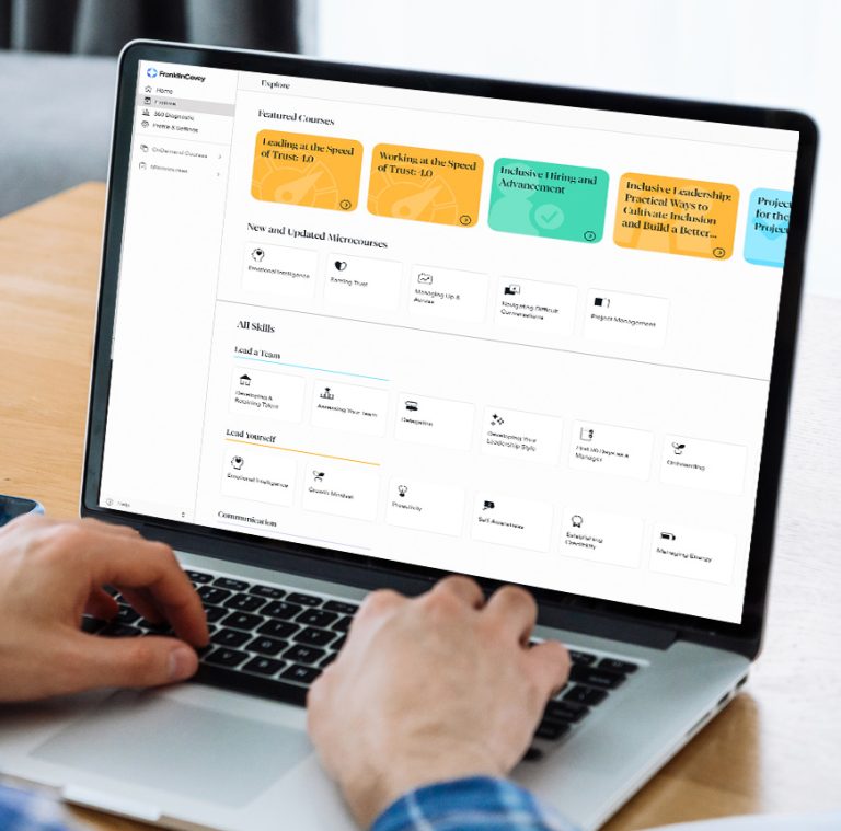 Dzięki rozwiązaniom FranklinCovey On Demand Learning Twoi pracownicy zyskują natychmiastowy dostęp do sprawdzonej wiedzy, która przekłada się na wymierne rezultaty – zarówno w rozwoju osobistym, jak i zawodowym.